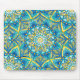En vacker Mousepad med en färgstark Mandala Mönster med strålande blå, Gult och turkos färg som representerar Himlar, Sol och vår vackra jord. En hyllning till skapelsens underverk som värmer våra hjärtan och ge hoppas att vi skapar en bättre framtid. Handdragen och målad av SunFreeStar.