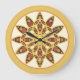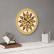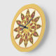 Tolvpunktsmandala mönster i chokladbrun, senap guld och mörk brun på vit, med guld bakgrund