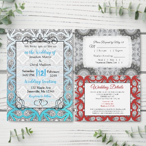 Svart Grå och Vit Mandala-tema Bröllop Spara datum