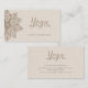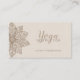 En raffinerad mandaladesign i kombination med varma jordnära toner skapar en stabil, balanserad look för en modern yogainstruktör. Kombinationen av flytande skrivstil och strukturerad sans serif-typ ger klarhet samtidigt som den totala känslan förblir tillgänglig och professionell. Layouten är lätt att läsa och presenterar din information på ett rent och självklart sätt. Anpassa med ditt namn, kontaktinformation och tjänster för att skapa en sammanhängande identitet som speglar din praktik.
