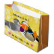 Minnesfira alla bröllop-årsdagar med den här snyggtens presentväska, som har ett vackert stiliserat par av Mandarin Anka. Elegant med hexagonala konfetti i varm gult lägger till lite natur och elegans till detta speciella tillfälle och denna milstolpe. Anpassa med kalvfåglars namn och år av giftermål. Omvänd visar identisk design. Design © W.H. Sim. Se mer på zazzle.com/expressionsoccasions