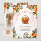 Överraska dina gäster med denna söta spara-datum-inbjudan med vackra apelsiner och rustika blad och lövverk med QR-kod för bröllopswebbplatsen på baksidan av kortet. Lägg enkelt till din evenemangsinformation i denna lättanvända mall och pryda detta kort med ditt favoritfoto för att göra det till ett unikt Spara-datum-kort.