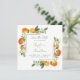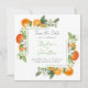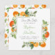 Mandarin-orangar, löv och blommar. Du kan ändra teckensnittet och teckensnittet färg. Inbjudan har en matchande orange mönster på baksidan.