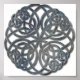 En berikad keltisk knut som är sammanflätad till en cirkel av svart glas. Datorkonst av Kathie Miller.