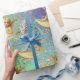 Vit, söt blondinkula, blåögd romantisk ängel som hänger på den halvmånade Måne i guld blommigt-gnistor, turkvas, akvblått, teal, lila färg med golden och silver-folie med blandat mediematerial. Det är också vackert inför jul, särskilda tillfällen, födelsedagar och bröllop.