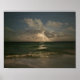 Måne bakom molnen över havet är en originalfärgning av perfektens mörk och ljusmoment. Djup blå himmel, mörk grönt hav, vitt vågar och ljust månljus som går genom molnen.