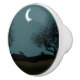 Den här utformningen illustrerar på ett lysande sätt att ett måne som är halvfärdigt hålls på en sträng, som om det vore en ballong. En tjej sitter på en parkbänk som håller strängen.