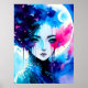 Måne Child. Fantasy Art med vackra, surrealiska anime-stil gudinna. AI-genererad teckning.