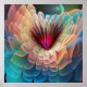 Den här utskriften har en fractal design i form av en magisk fantasi-blomma och i högernas övre hörn ett blått måne. De genomskinliga petalerna har ett vackert drömt färg, som är blått, rosa, orange och grädde.