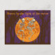 Dans vid det ljust av månen. Vintageteckning i orange och lilor för Halloween och Samhain. Perfekten för häxorna på din gåva listar.