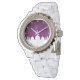 Arabisk illustration med silhuetter från måne, stjärnor och moské på lila bakgrund.