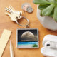 Måne och Beach Fyrkantig Silverfärgad Nyckelring