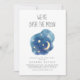 Måne och stjärnor flicka.. Vi är över inbjudan till måne är perfekt för en enkel babydusch. Den moderna visuella designen har en marin blå vattenfärgsmolnform med en gult kvart måne och stjärnor.