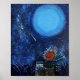 Måne och stjärnor målning marinblå läsning finkons poster