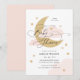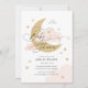 Måne och stjärnor Matt rosa skrivstil Baby Shower Inbjudningar