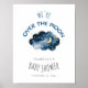 De här Måne och Stars.. Vi är över Måne VälkomstPoster är perfekt för en enkel babydusch. Den moderna visuella designen visar en marinblått vattenfärgsmolnform med gulten crescent måne och spridda stjärnor.