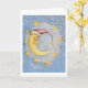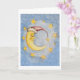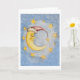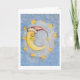 Vintageinspirerat vykort med en illustration av en sovande halvmåne omgiven av en ring av stjärnor. Detta kort är perfekt för att skicka hälsningar under högtiderna, men fungerar också när som helst under året!