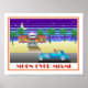 Färgfull bild av den tropiska konsten Deco-bilden skapat i Corel Draw av konstnären Roanne Baldwin. Har silver middag, handflatan träd, halvmåne måne, flappers och vintage Rolls Royce.