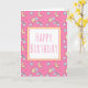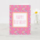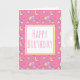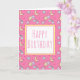 Ett mönster med lycklig stjärnor, måne, moln och regnbågar på rosa... Stäng av och sömnig. En vit rektangel som läggs ovanpå med "Grattis på födelsedagen" skriven inuti. Ett meddelande om personlig på insidan.