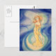 En kvinna med vågigt, guldhår och en blek med en sol-formad brosch står i lugn på ett halvmåns måne i det snurrande mörk blått himlar. Hon är klädd i blekens gult med en blek gult aura, lätt gult som snurrar runt i penseldrag med skuggor av mörk blått i bakgrunden. En vattenfärg och bläck-pennmålning, baserad på den bibliska passagen som gäller för kvinnan som kläs med sol, måne under hennes fötter och krönts med TV-stjärnor