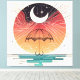En fantasifull nattlig himmelsscen där en halvmåne varsamt balanserar på en paraply medan fint linjeregnet förvandlas till stjärnor. En drömsk boho- accent - perfekt för sovrum, läshörn, meditationshörn, barnkammare, myska kaféer, hemmakontor eller andliga läkningsutrymmen.