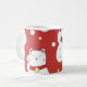 Maneki-Neko cat, Japansk doodle mönster. Kaffemugg