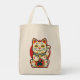 Denna klara illustration har en traditionell japansk Maneki Neko, eller "Lucky Cat", som skildras i ett charmigt och vismiskt stil. Katten visas upprätt i sitta och höjer sin lämnat tass i en välkomnande gest som tros ge bra lycka och lycka. Katten har ett vackert och glatt uttryck, med ögon och mun böjd till ett milt leende. Maneki Neko är till övervägande del vit med fläckar av gult och rött, vilket ger en livlig och färglös beröring. Det bär en grönt i krage med en guld-klocka, som symboliserar välstånd och välstånd. Katten har ett stort, rött mynt med svart tass avtryck och betonar ytterligare sin roll som bärare av tur och bra förmögenhet. Bakgrunden har en fetstilt röd cirkel som förbättrar kattens ljusa och glatta utseende. Den övergripande konstruktionen har en retro, något kränkt struktur, ge den till en nostalgisk och tidlös känsla.