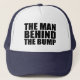 Manen bak den roliga pappan för buk som är truckerkeps