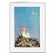 Måneönskemål. Liten flickasitta på en blommig backe på natten som tittar månen och den starry himmlen, danande en wish. Gullig vintagesagobokillustration av rim för godhjärtade barn: Moderna morgåsklirr, vid Ethel Fairmont, 1916. Konstnär: Johnny Gruelle.