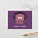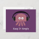 Den purpurfärgade vykortet med en gullig & besynnerlig rosa manet som ha på sig hörlurar och ord ", håller den enkel", om du önskar att ändra bakgrundsfärgen klickar precis på "skräddarsy den" knäppas. Text är också anpassadet - raddatypsnitt & färgar för att välja från. Behaga besök mitt nyktra Princesslager för unika & roliga gåvor för folk i återställning från alkohol och narkotikaberoende - och gåvor med andliga/inspireras meddelanden. Alla illustrationer som skapas av en alkoholist i återställning.