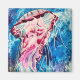 Vattenfärg original konst av rosa maneter i undervattens tema. Hav konst tema. Färgrik maneter.