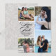 Det här är ett vackert elegant bröllop-kort som sparar datumkortet med fyra fotografier och svart text i porträtt.