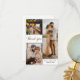 Grattisar på bröllop. De fantastiska bilderna från bröllop kan delas med dina gäster genom det här tackkortet. Välj dina tre favoriter bilder och gör detta till ditt eget. Anpassa det med namn, ett speciellt budskap och bröllop datum. Med guld-utskrift för ord "Tack". Tips! Du kan välja foton av hederliga gäster för att göra detta omhuldade "tackkort", minnesvärt och tänkvärt.