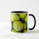 Fotografi av flera päron i grönten som trycks runt mugg.