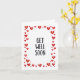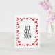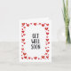 Det hälsningskort som du skapade är en hjärtlig visning av kärlek och stöd. Den vita kvadratiska bakgrunden fungerar som perfektens arbetsyta för de utspridda röda hjärtan, en del med band-aids, som symboliserar läkning och vård. Placeringen av hjärtan i ett till synes slumpmässigt mönster tillför en liten bit stollig, medan det djärva "GET WELL SOON"-meddelandet i mitten förmedlar ditt uppriktiga önskemål för ett snabbt tillfrisknande. Denna tankeväckande utformning, med sitt enkla men oklanderliga inslag, kommer säkert att ge ansikte och hiss ett leende i mottagarens själ under en utmanande tid. 🩺 💕