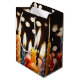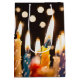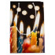 Stängning av lysande födelsedagsljus och bålljus på svart.