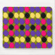 Denna ljusa muspad är täckt av många prickar av lila, rosa gult och svart som ordnats i rader som avgränsas av mörk grönt områden. Denna fantastiska abstrakt får mig att tänka på en mur som är täckt av färgtoner efter ett målarspel.