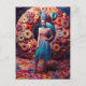 AI skapade konst av en vacker kvinnlig mode-modell framför en gigantisk munkkonst med ännu fler nötter på golv
