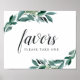 Designad för att matcha vår samling av Abundant Foliage bröllop, den här eleganten botaniska tecken inbjudningskort gäster att ta en tjänst. Anpassa med två linjer anpassningsbar text i calligrafi och blockering (visas med "Favors; ta ett"), framtagen med lush-vattencolor greenery och eukalyptus löv.