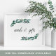 Designat för att matcha vår samling av överflödig Foliage bröllop, så ger elegantens botaniska tecken gästerna möjlighet att ta sig ur sina kort och gåvor. Anpassa med en rad anpassningsbar i calligraphy-skriptbokstäver (visas med "Cards & Gifts"), framtagen med lush water greenery and eucalyptus lövs.