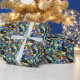 Fotografi av massor av färgstarka marmorskulpturer och skotrar.