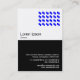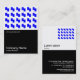 Ett affärskort är halvsvart och halvvitt med ett modernt motiv för abstrakten. Huvudsakliga företagsdetaljer på framsidan med namn och kontaktuppgifter på baksidan med liknande tema.
