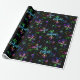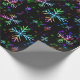 Den mångfärgade snöflingor i regnbågefärger på en mörk bakgrund med en laser-hologramdesign utformar