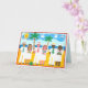Folk konstnärGloria Meer shows tre uppsättningar av lycklig gifta sig nyligen av olika etniska bakgrunder. Dessa brudar och brudgummar poserar på en strand med en le sol och vatten och palmträd i bakgrunden. Insida som kortet läser: Ett bra giftermål kräver att falla som är förälskat många tider alltid med den samma personen.