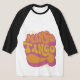 T-shirten har texten "Mango Tango" i ett fet och färglöst format. Texten består av många färg, med olika skugga av orange, gult och kanske till och med rött eller rosa för brev. Det övergripande utseendet är roligt, fruktig och perfekt för sommaren.