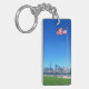 Schlüsselanhänger Manhattan, New York City mit der Amerikanischen Flagge / Stars and Stripes aus der Sicht von Ellis Island und dem Empire State Building