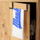 Manhattan, New York City, skriven med en swash (svan). Typsnitt i vitt och blått. Originaltextdesign.