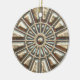 Rostig industriell metall reflekterar i denna manhole täcker det inspirerade tredimensionella geometriska mönster i rik skuggar av guld, stickan och rostfritt stål. Tillgängligt på en lång räcka av gåva- och brevpapperprodukter.