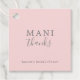Eleganta och moderna bröllopsdusch-märkningar med en minimalistisk design med texten "Mani Tacks" i serief- och handskriftsstilar och ditt namn och evenemangstitel nedan, i grått, på en ljusrosa bakgrund. Teckensnitten och bakgrundsfärgerna kan ändras till valfri färg du önskar. Dessa eleganta och stilfulla märkningar är perfekta för den minimalistiska bruden och lägger till en personlig touch till dina presenter.