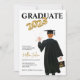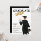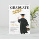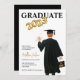 Inbjudan till studenten för killens studentfest. Male porträtt teckning student med svart hatt och gurka, rött hår och guld 2023-ballonger. Anpassa alla uppgifter om din grad party för en unik inbjudan till studenten.